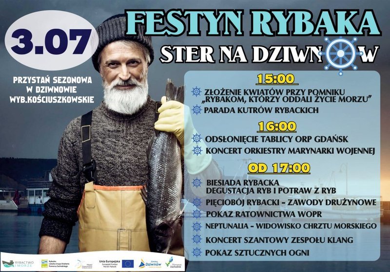 Dziwnów. „Ster na Dziwnów” to cykliczna impreza organizowana od wielu lat przez gminę Dziwnów, Rybacką Lokalną Grupę Działania Pomorza Zachodniego, Europejski Fundusz Morski i Rybacki oraz Nasz Dziwnów, która ma za zadanie pokazać pracę tutejszych rybaków. Będą oni częstowali gości i wczasowiczów złowionymi przez siebie rybami, co zawsze jest wielką atrakcją, a chętnych nigdy nie brakuje.