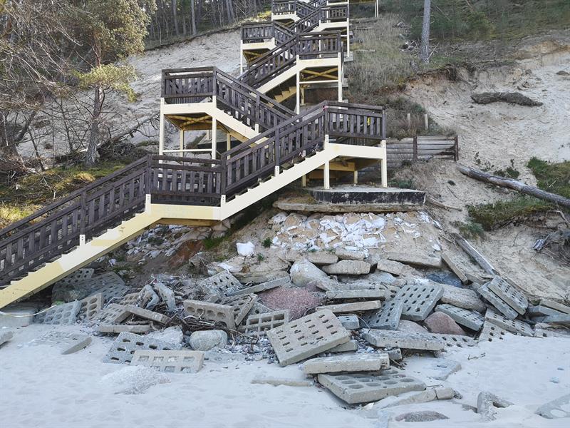 Ubiegłoroczny styczniowy sztorm podmył schody prowadzące na klif. Do dziś wyłączone są z eksploatacji, gdyż Woliński Park Narodowy nie może znaleźć wykonawcy remontu. Odbyły się cztery przetargi i nadal nie ma chętnego, który podjąłby się remontu obiektu za cenę, jaką ustalił WPN, czyli ok. 300 tys. zł. Wykonawca chce dwa razy więcej.