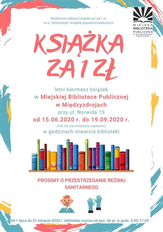 Do 19 września 2020 r. lub do ewentualnego wyczerpania zapasów w godzinach otwarcia biblioteki trwa letni kiermasz „Książka za 1 zł”. Na kiermasz zostało przygotowanych ponad 5 tys. książek i czasopism od 1 zł.