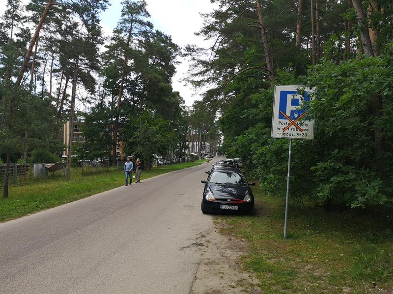 Wjeżdżając w ul. Grunwaldzką (na wysokości lodziarni Szkolnicki) i jadąc w zachodnim kierunku (w lewo), widzimy znak, że zaczyna się SPP. Inny znak, jaki ustawiony jest na trasie prowadzącej nad morze, jest całkowicie niewidoczny, gdyż zasłaniają go drzewa. Jadąc Grunwaldzką, mijamy po ok. 400 metrach parkomat, którego już dalej nie ujrzymy. Jeżeli nie wykupimy biletu, to będziemy musieli iść do niego pieszo. Skręcając w prawo w ulicę Spokojną, wjedziemy w ul. Ciechanowską, gdzie stoi zasłonięty gałęziami drugi parkomat. Tylko skąd człowiek parkujący przy ul. Grunwaldzkiej ma o tym wiedzieć?