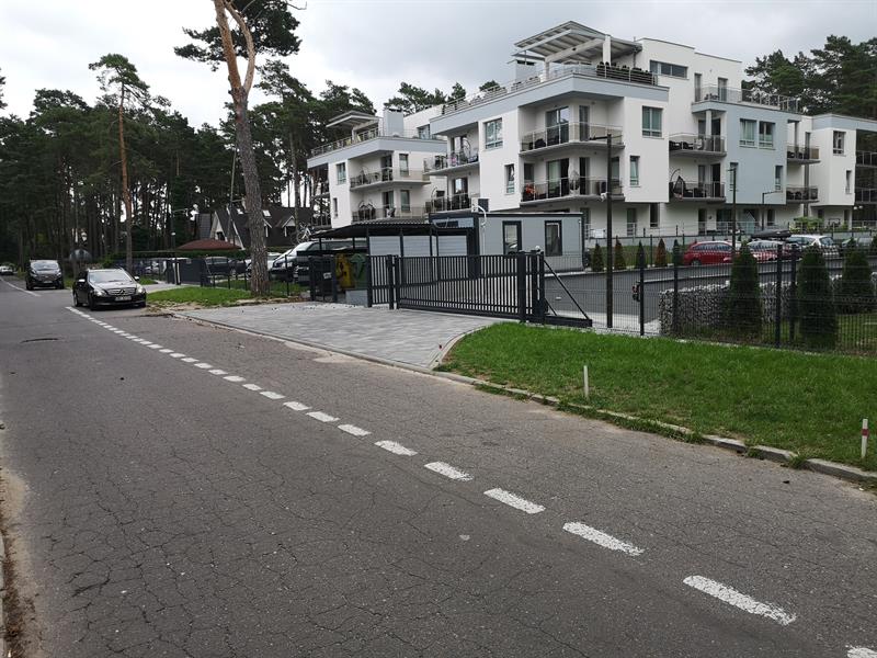 Przed wjazdem do podziemnego parkingu wyznaczono miejsca parkingowe.