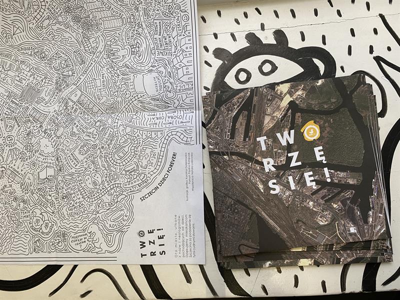 Jednym z kreatywnych pomysłów dla dzieciaków, jakie oferuje w te wakacje Galeria TWORZĘ SIĘ są "alternatywne" mapy Szczecina. Na początku czerwca, w jednym z pomieszczeń galerii, powstało miasto utkane z nazw i neologizmów pochodzących od dzieci. SZCZECIN DZIECI jest również dostępny w formie mapki. Można je bezpłatnie otrzymać w Domu Kultury „13 muz”. Po mapce można rysować i dopisywać swoje wymyślone i przekręcone nazwy. Nazwy i neologizmy pochodzą od mieszkańców Szczecina, a za ilustracje i grafiki odpowiada Karolina Gołębiowska. Pomysłodawczynią projektu jest Paulina Ratajczak.