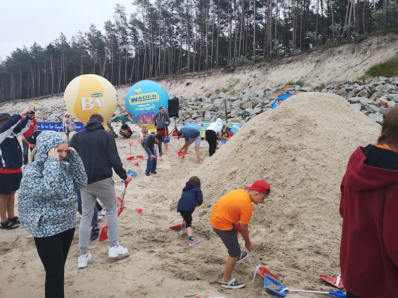 Od kilku dni na Wybrzeżu Rewalskim trwa konkurs w usypywaniu na plaży wieży z piasku. Startować może każdy bez względu na wiek, ale można tylko używać łopatek dostarczonych przez organizatora.