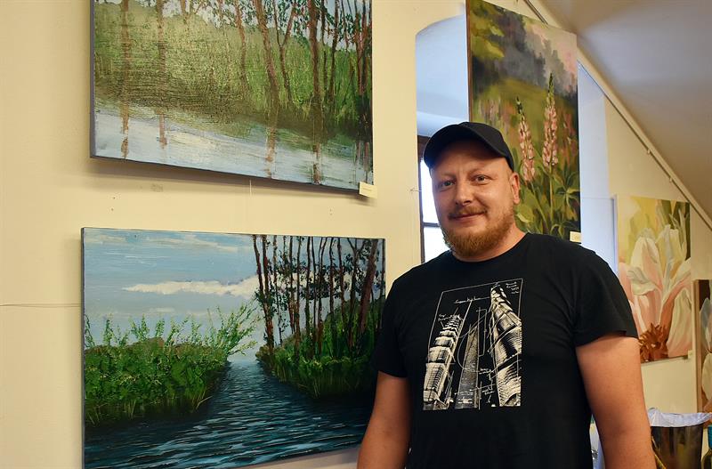 – Stworzyłem tam cztery widoczki, bardzo ekspresyjne obrazy, które najpierw malowałem, robiąc szkic gałęziami grubą warstwą farby – opowiada pan Artur, który z zawodu jest grafikiem. – To podkreśla strukturę tych obrazów. Zależało mi na tym, by odbiorca, który stanie przed nimi, przeniósł się w tamto miejsce.