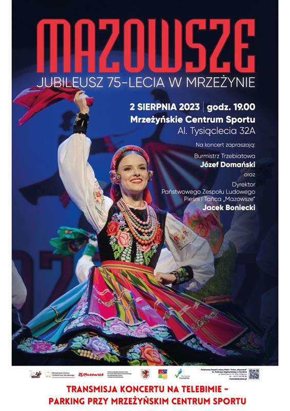 Mrzeżyno. Gmina Trzebiatów gościć będzie chór, orkiestrę i tancerzy Państwowego Zespołu Ludowego Pieśni i Tańca „Mazowsze”. Burmistrz Trzebiatowa Józef Domański oraz dyrektor PZLPiT „Mazowsze” Jacek Boniecki zapraszają na koncert z okazji 75-lecia zespołu, który odbędzie się w środę 2 bm. o godz. 19 w hali widowiskowej Mrzeżyńskiego Centrum Sportu. Liczba miejsc jest ograniczona, jednak przed MCS zostanie ustawiony telebim z transmisją koncertu na żywo.