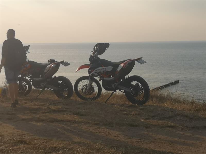 Innych miłośników szaleńczej jazdy, tym razem ze Szczecina, ujrzałem na klifie w Trzęsaczu. Posiadali tablice rejestracyjne, ale zamontowane poziomo do jezdni, czyli niewidoczne dla innych. Motocykl z lewej miał „blachę” zardzewiałą, więc nie można było odczytać numerów. Potem obaj szaleńcy przejechali przez Trzęsacz, budząc strach wczasowiczów. ©℗