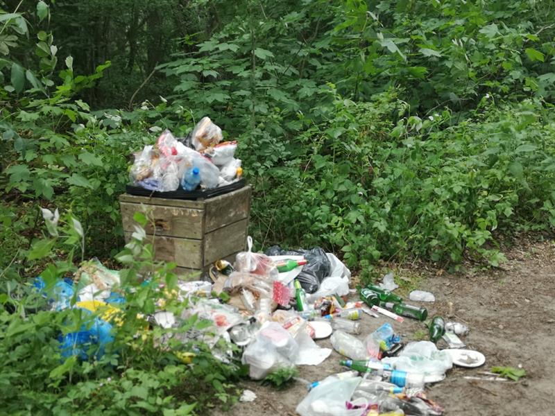 Na plaży nie ma kosza na śmieci, bo oficjalnie plaży nie ma, ale turyści zbierają odpady i wrzucają je do koszy ustawionych przez nadleśnictwo na drodze. Kosze, szczególnie po weekendzie, są przepełnione, ale dobrze, że plażowicze nie zostawiają odpadów na plaży.