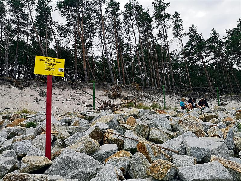W zeszłym roku Urząd Morski w Szczecinie umocnił nadmorski klif w Pogorzelicy potężnymi głazami, które mają zabezpieczać brzeg przed podmywaniem przez morskie fale. Ustawiono tablice zakazujące wchodzenia na głazy, które mają bardzo ostre krawędzie. Niestety, jak widać na zdjęciu, wielu rodziców nie zdaje sobie sprawy z niebezpieczeństwa i pozwala swoim dzieciom na wspinanie się na głazy. Jeśli wsunie się pomiędzy nie noga, grozi to poważnymi konsekwencjami, w najlepszym przypadku – nogą w gipsie i przerwanymi wakacjami. ©℗