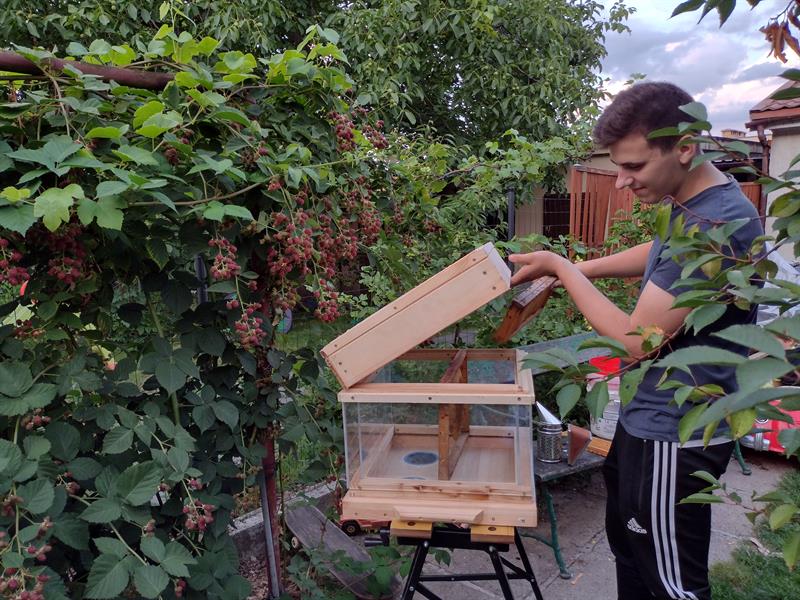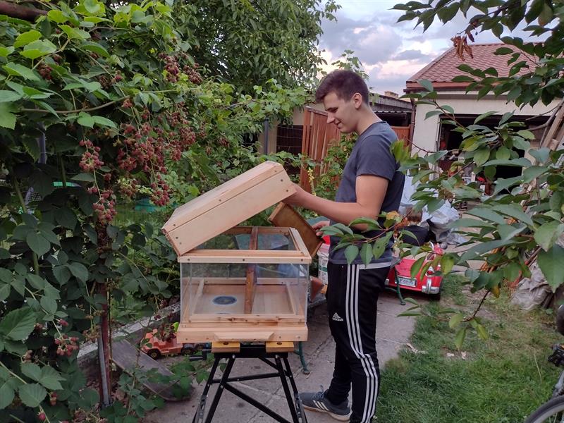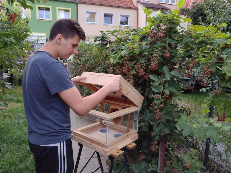 - Jego ścianki są wykonane ze specjalnego - przezroczystego a mimo to bezpiecznego - szkła akrylowego, czyli tworzywa sztucznego potocznie zwanego pleksi. W nim zamieszkała młoda pszczela rodzina: królowa z dworem liczącym około 4 tysiące sztuk. Ma do dyspozycji dziesięć ramek, na których między innymi będzie można zobaczyć zgromadzony pyłek, zapasy miodu, oraz młode czerwie: odkryte, czyli dopiero złożone oraz zakryte, czyli pszczoły na tyle dojrzałe, że zaraz będą się wygryzać - opowiada Zdzisław Baran, najbardziej znany i lubiany szczeciński pszczelarz, który założył również pierwszą w Szczecinie kłodną barć opodal Syrenich Stawów.