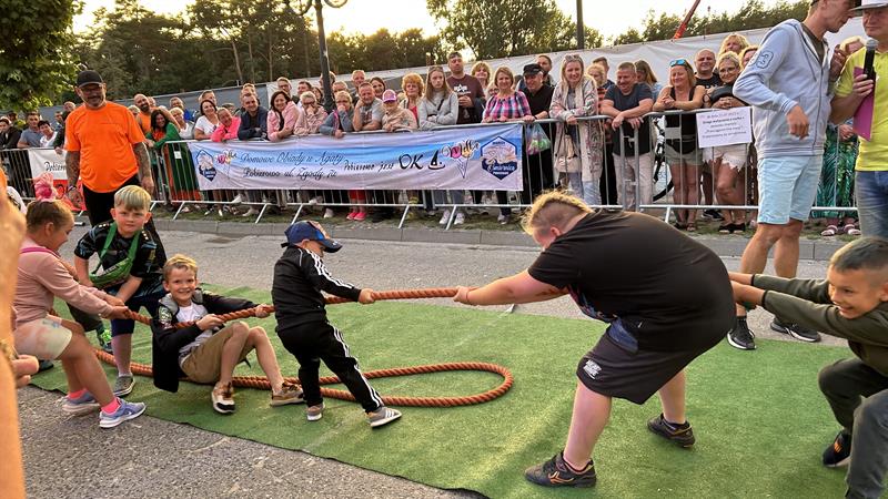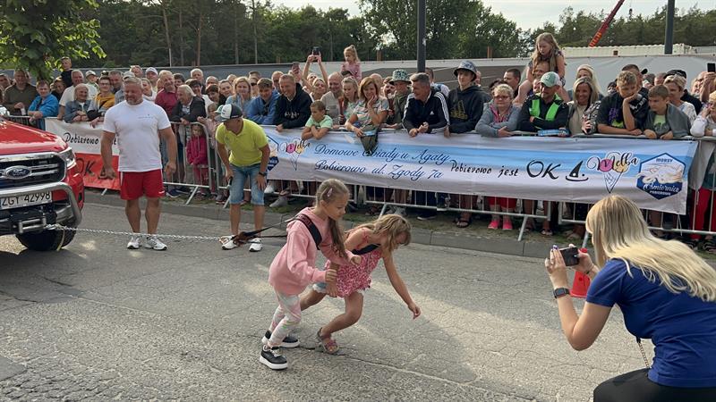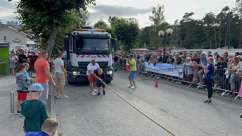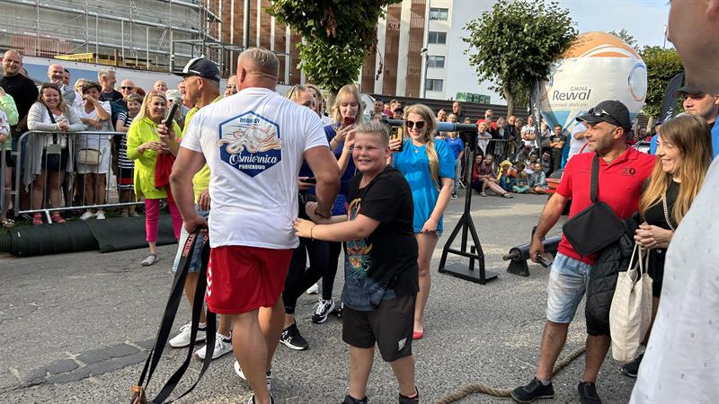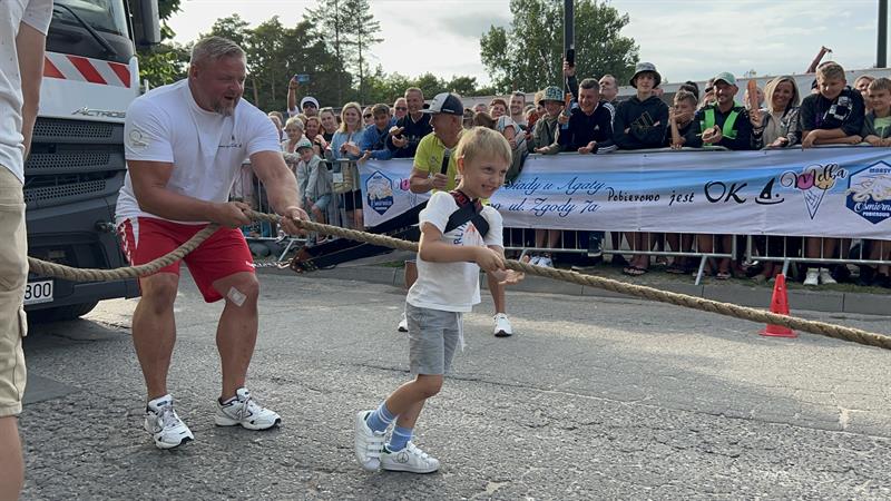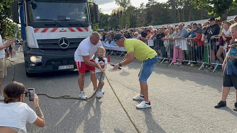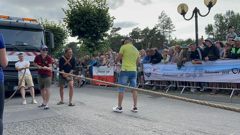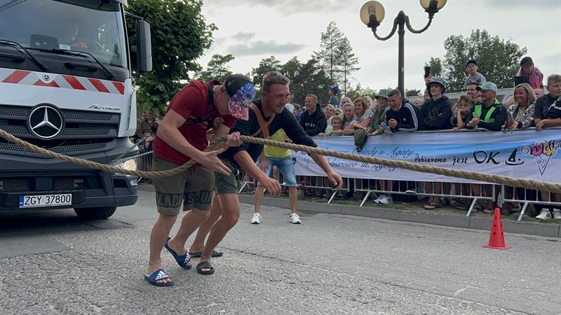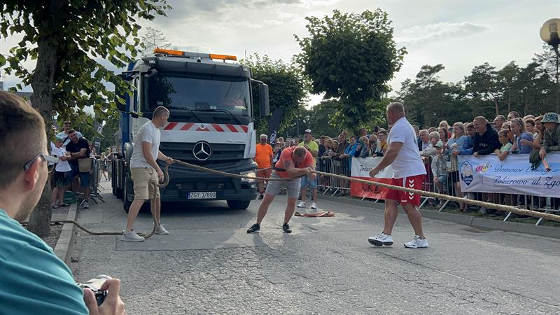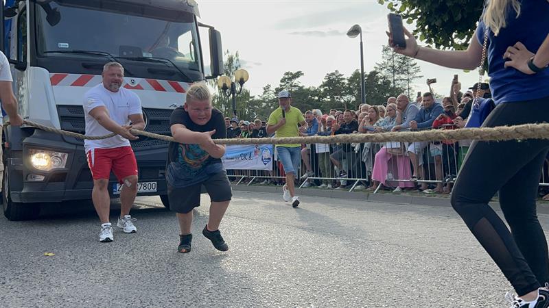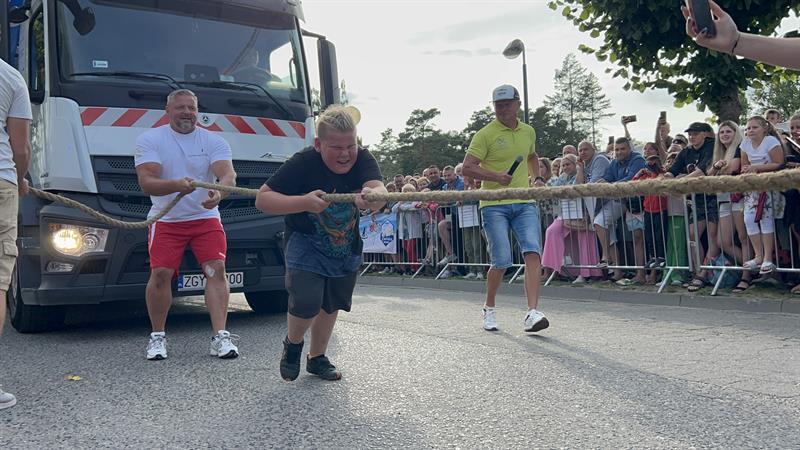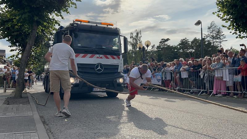 Strongman Sławomir Toczek bez trudu pociągnął ciężarówkę, przenosił jednorazowo po cztery panie (łącznie około 230 kg) i wychowywał sobie godnych następców. Przez prawie trzy godziny Irek Bieleninik fundował wczasowiczom dobrą zabawę, sypał dowcipami i zagrzewał małych i dużych siłaczy do walki. Podziw oprócz pana Wojtka, Morsa z Pobierowa, zwycięzcy niejednego konkursu przeciągania liny (o tym napiszemy i pokażemy wkrótce) wzbudziły zwłaszcza panie, z którymi niejeden pan nie miałby szans.