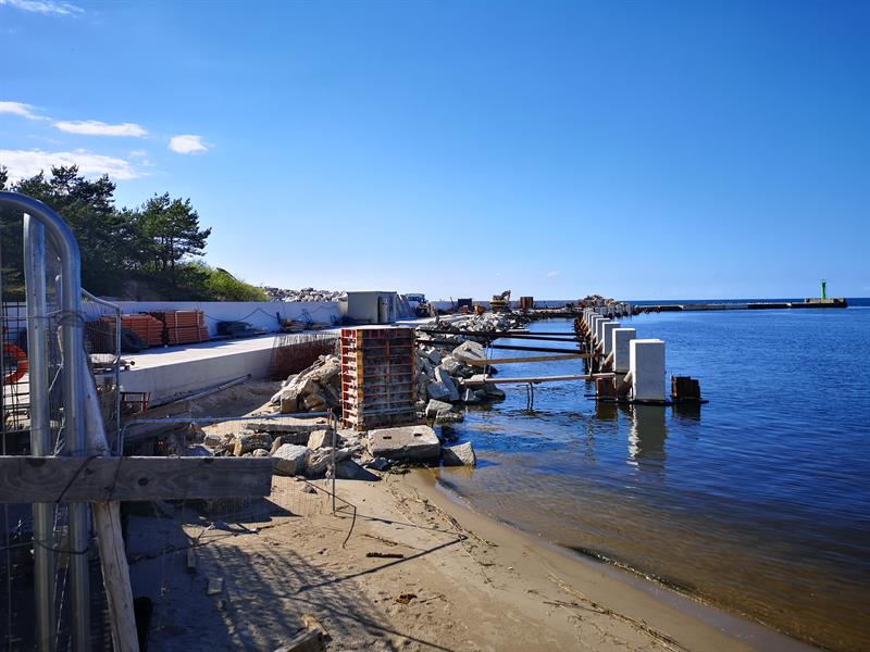 Łączna długość modernizowanych falochronów to 454,50 m, a umocnienie brzegowe 65,5 m. Koszt robót wynosi 24,2 mln zł. Wykonawcą jest Przedsiębiorstwo Handlowo-Usługowe „Hydrobud” Adam Dzik z Ustronia. ©℗