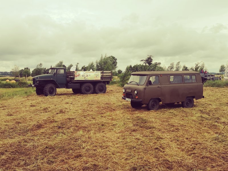 Można też zobaczyć jak wyglądały kabiny potężnych samochodów produkcji naszych byłych sojuszników ze wschodu, które były na wyposażeniu naszego wojska. Robią wrażenie swoim rozmachem, że o zużyciu paliwa nie wspomnę. Grupa rekonstrukcyjna Nałęcz z Trzebiatowa przy współpracy z gminą Trzebiatów prezentuje także mundury wojsk polskich, niemieckich i rosyjskich.