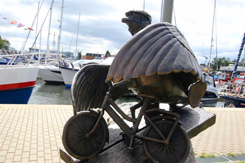 Na terenie kołobrzeskiej Mariny Solnej pojawił się Marian. Tym razem ma on zamiar spróbować swoich sił w jeździe po unoszącej się na wodzie desce. Mowa o kolejnej, siódmej już mosiężnej statuetce charakterystycznej mewy wpisującej się w krajobraz kurortu. Posążek wyszedł, tak jak poprzednie, spod dłuta artysty Romualda Wiśniewskiego. Przypomnijmy, że projektantem wszystkich kołobrzeskich Marianów jest miejscowy grafik komputerowy Dariusz Jakubowski. Najnowszy Marian jest swojego rodzaju hołdem dla Ligi Morskiej i Rzecznej, która każdego roku organizuje na terenie portu zawody w jeździe rowerem po 20-metrowej desce wspartej na pływających oponach. ©℗