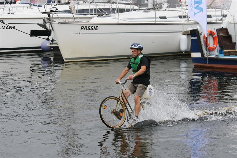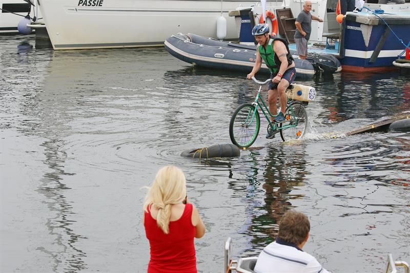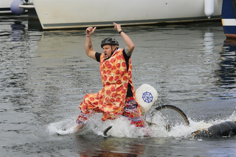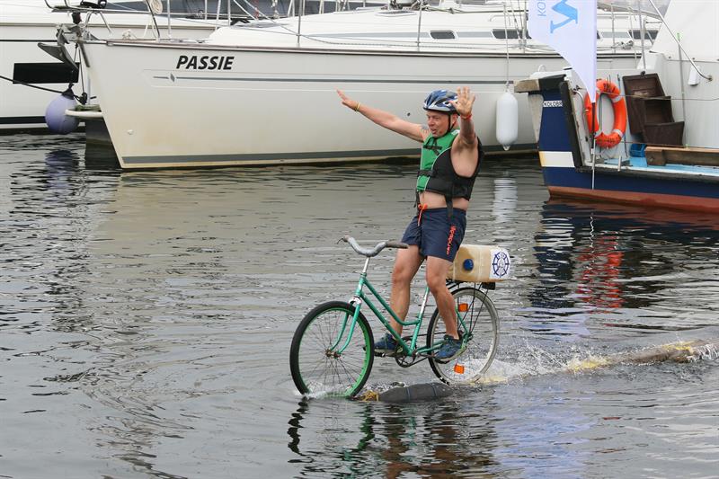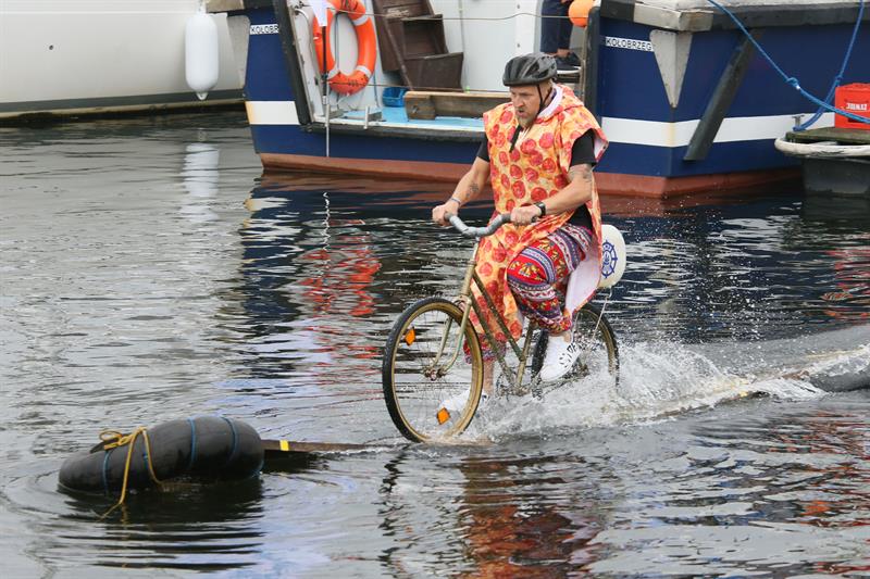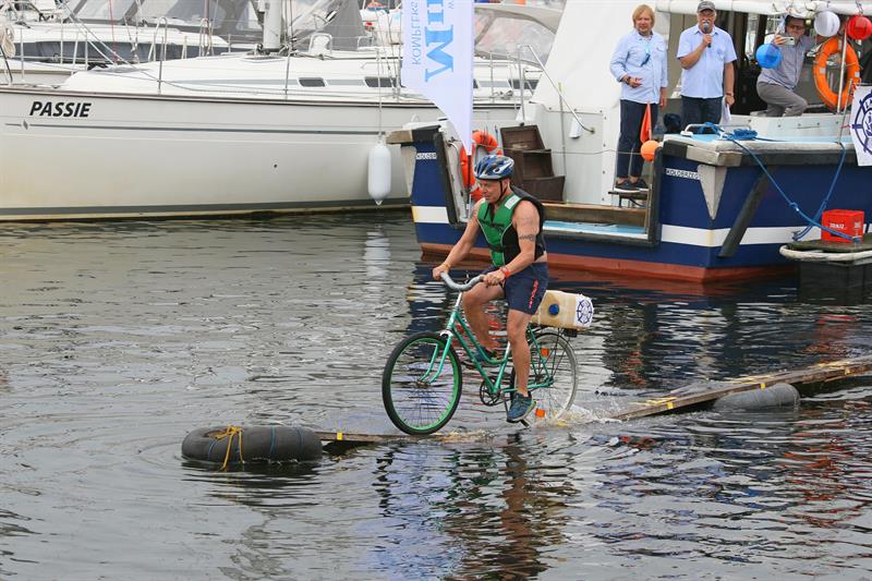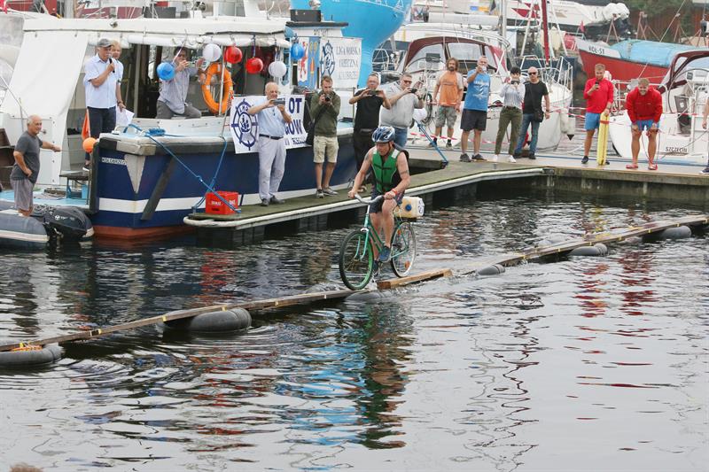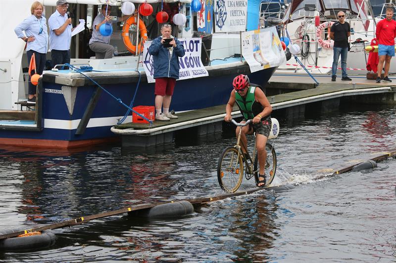 Jeden za drugim zawodnicy wpadali do wody. Mowa o zorganizowanych w Kołobrzegu po raz 23 zawodach w jeździe rowerem po desce pływającej na wodzie. Impreza, która odbyła się w sobotę w porcie jachtowym, przygotowana została przez działaczy Ligi Morskiej i Rzecznej. Na starcie 21-metrowej trasy pojawiło się 37 śmiałków, zarówno miejscowych, jak i odwiedzających kurort okazjonalnie. Był też jeden obcokrajowiec – Anglik Carl Mottramto (na zdjęciu), mieszkający w Kołobrzegu. To właśnie on wygrał tegoroczną edycję zawodów, pokonując dwukrotnie – bo także w finale – całą trasę. ©℗