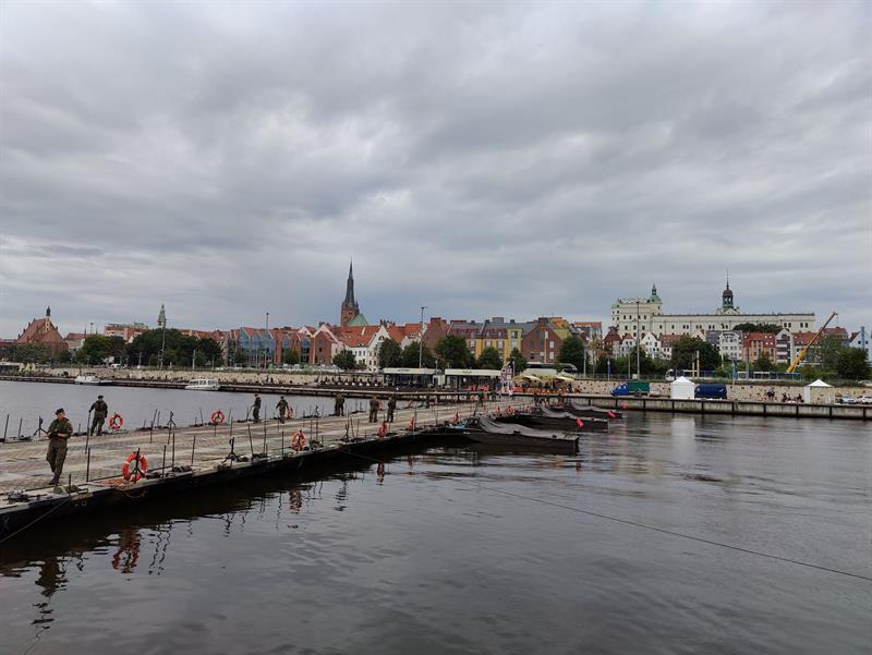 Montaż mostu rozpocznie się już 17 sierpnia. Jego pierwsze elementy zaczną przypływać już 16 sierpnia. Dostarczą je saperzy z 5. Pułku Inżynieryjnego ze Szczecina (Podjuchy).