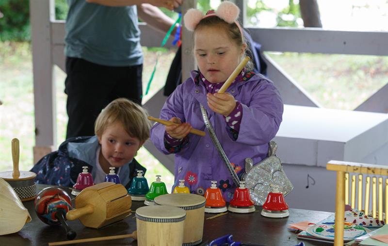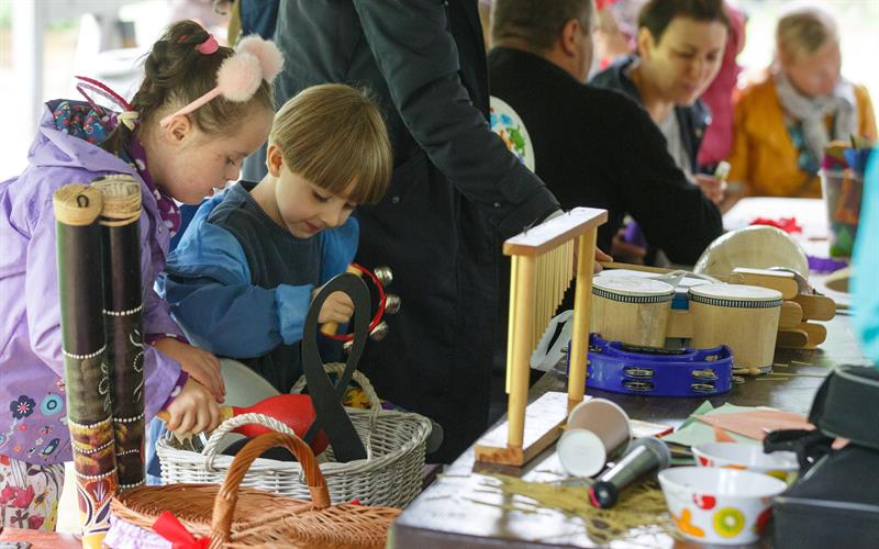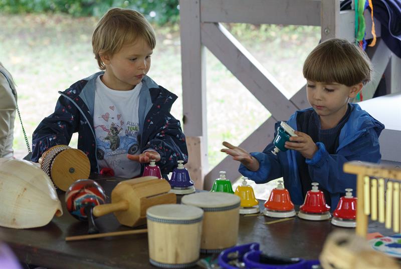 W Różanym Ogrodzie od godz. 11 do 13 odbywały się warsztaty dla dzieci. Najmłodsi, pod okiem instruktora i z pomocą rodziców, tworzyli różnobrzmiące instrumenty z wykorzystaniem plastikowych i papierowych tub różnej wielkości, kaszy, ryżu, kamyków. Czekały też na nich warsztaty muzyczne.
