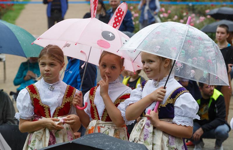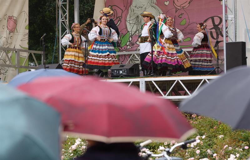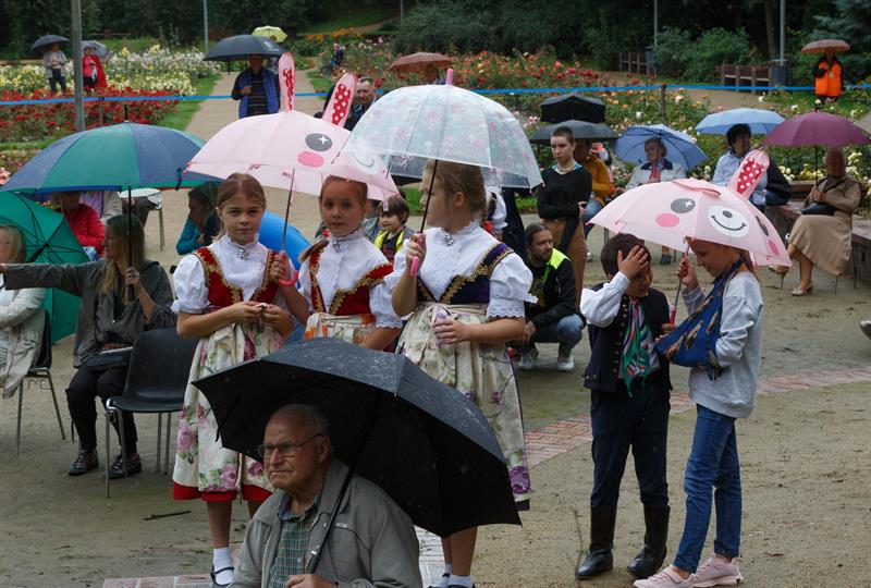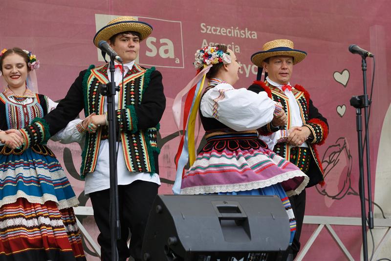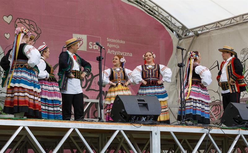 Choć szczecinianie odwiedzający w niedzielne południe (29 bm.) Różankę przyszli pod parasolami, atmosfera spotkania szybko zrekompensowała im kiepską pogodę. Wszystko za sprawą barwnego i radosnego widowiska muzyczno- tanecznego w wykonaniu Zespół Pieśni i Tańca Ziemi Szczecińskiej Krąg.
