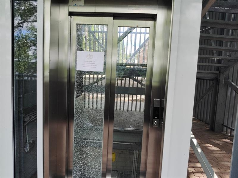 Szyba w windzie wieży została wybita 26 maja br.