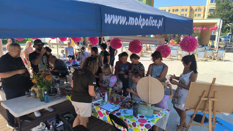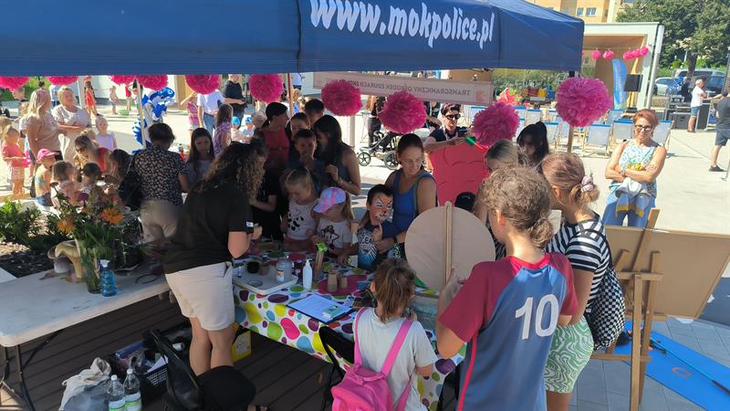 Na placu stanęły stoiska, przy których najmłodsi mogli skorzystać np. z malowania twarzy lub zajęć manualnych. Na scenie prezentowali się artyści. A na boisku rywalizowali młodzi wysportowani, którzy trenowali przez całe wakacje. Bo właśnie tego dnia odbywał się tu finał ulubionej imprezy organizowanej przez MOK – „Wakacje z Hobby Horse”. Uczestnicy musieli pokonać tor naszpikowany przeszkodami. Oczywiście te zawody zakończyły się wręczeniem dyplomów i nagród.