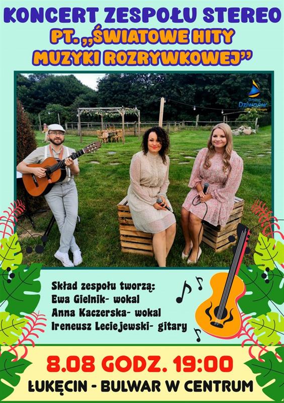 Jutro, 8 sierpnia na bulwarze w centrum Łukęcina (gmina Dziwnów) odbędzie się koncert zespołu Stereo pt. „Światowe Hity Muzyki Rozrywkowej”.
