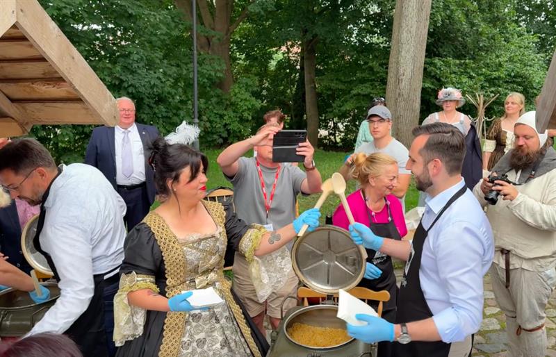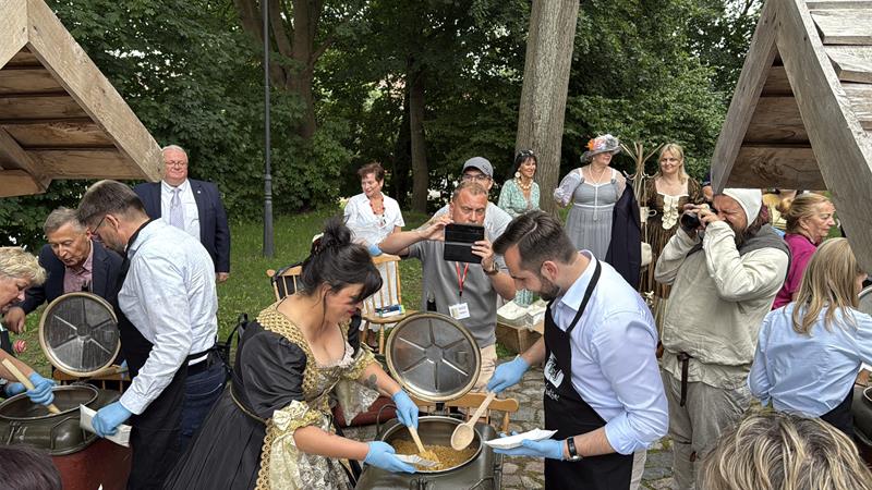 - Jest to piękna historia o podziałach, ale my od wielu lat chcemy, by rzeka nas łączyła, a nie dzieliła - powiedziała Marzena Domaradzka, burmistrz Trzebiatowa, która osobiście nakładała kaszę na talerze.