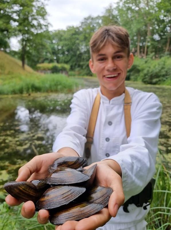 Szczeżuje. Niektóre osiągają nawet 10 cm. A małże trzyma Nikodem Rusin, przewodnik z Fortu Gerharda.