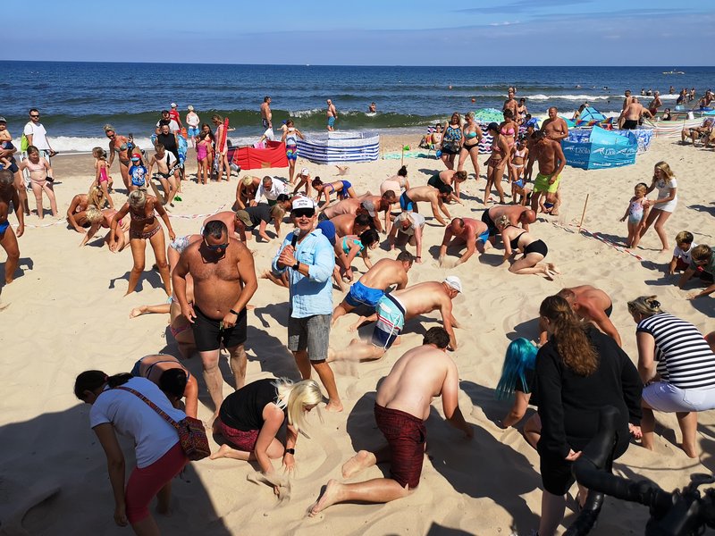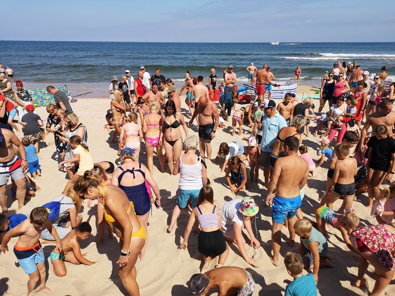 Na plaży w Pobierowie odbyła się zabawa polegająca na znalezieniu ukrytych na plaży skarbów. Były to kartki z numerami nagród, które uczestnicy otrzymywali po ich odnalezieniu.