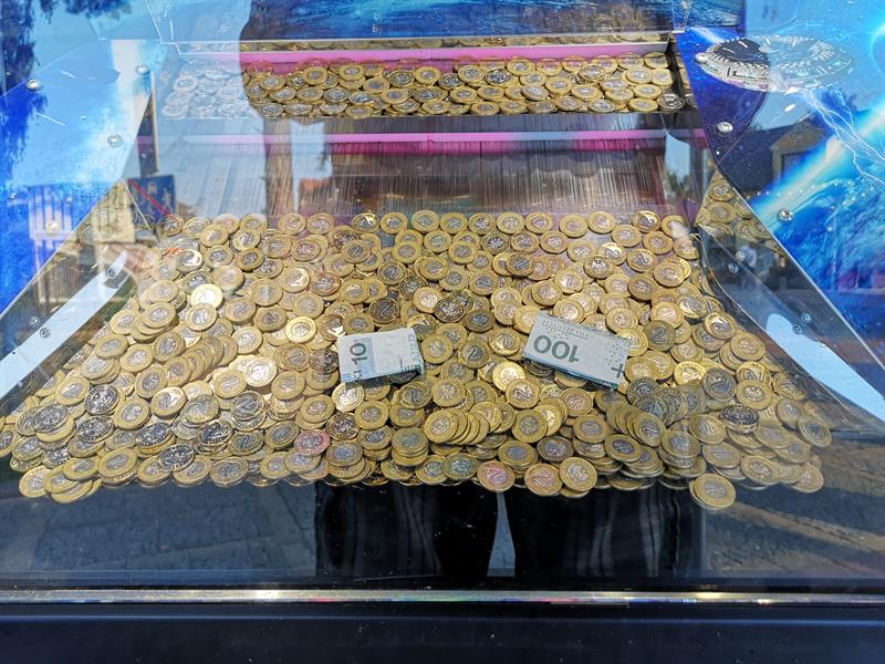 Dla zachęty organizator tej gry wrzucił na monety banknoty nawet stuzłotowe, które mają zachęcić do zabawy. Pytanie jest tylko jedno: czy banknot wyleci przez otwór przeznaczony na monety?