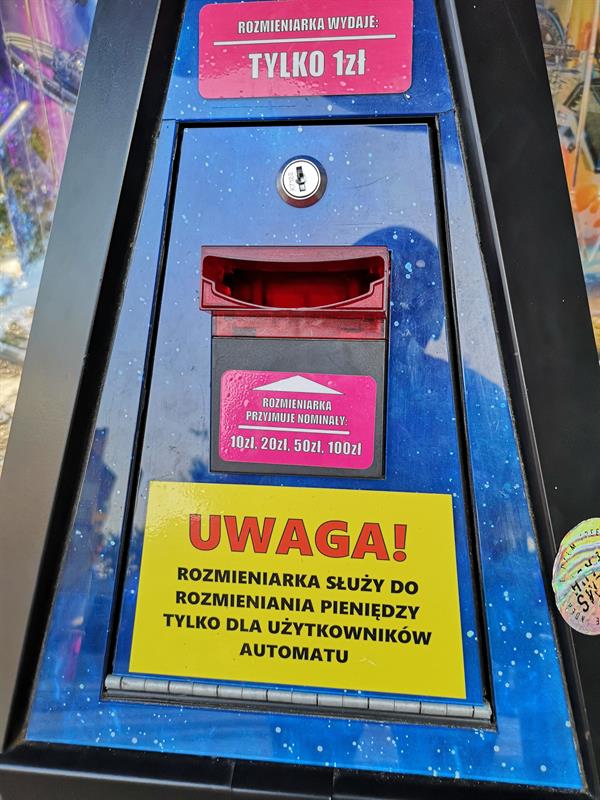 W ostatnich dniach zauważyłem, że pojawiły się kolejne urządzenia, m.in. w Pogorzelicy i Niechorzu. Tyle że jest na nim widoczna informacja, że są to „rozmieniarki”, które „służą do rozmieniania pieniędzy tylko dla użytkowników automatu”.
