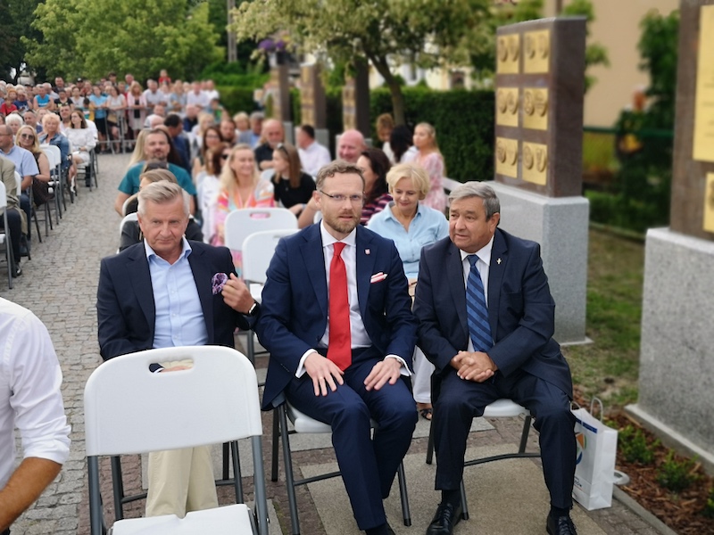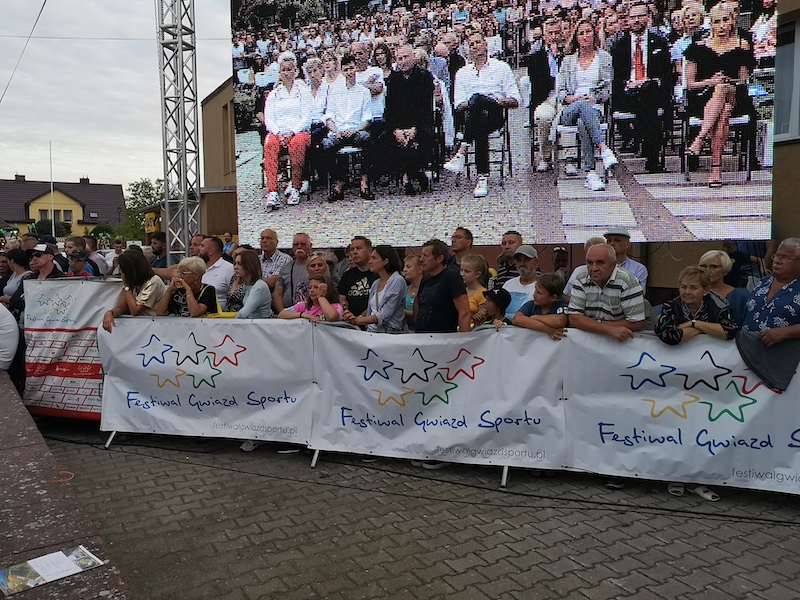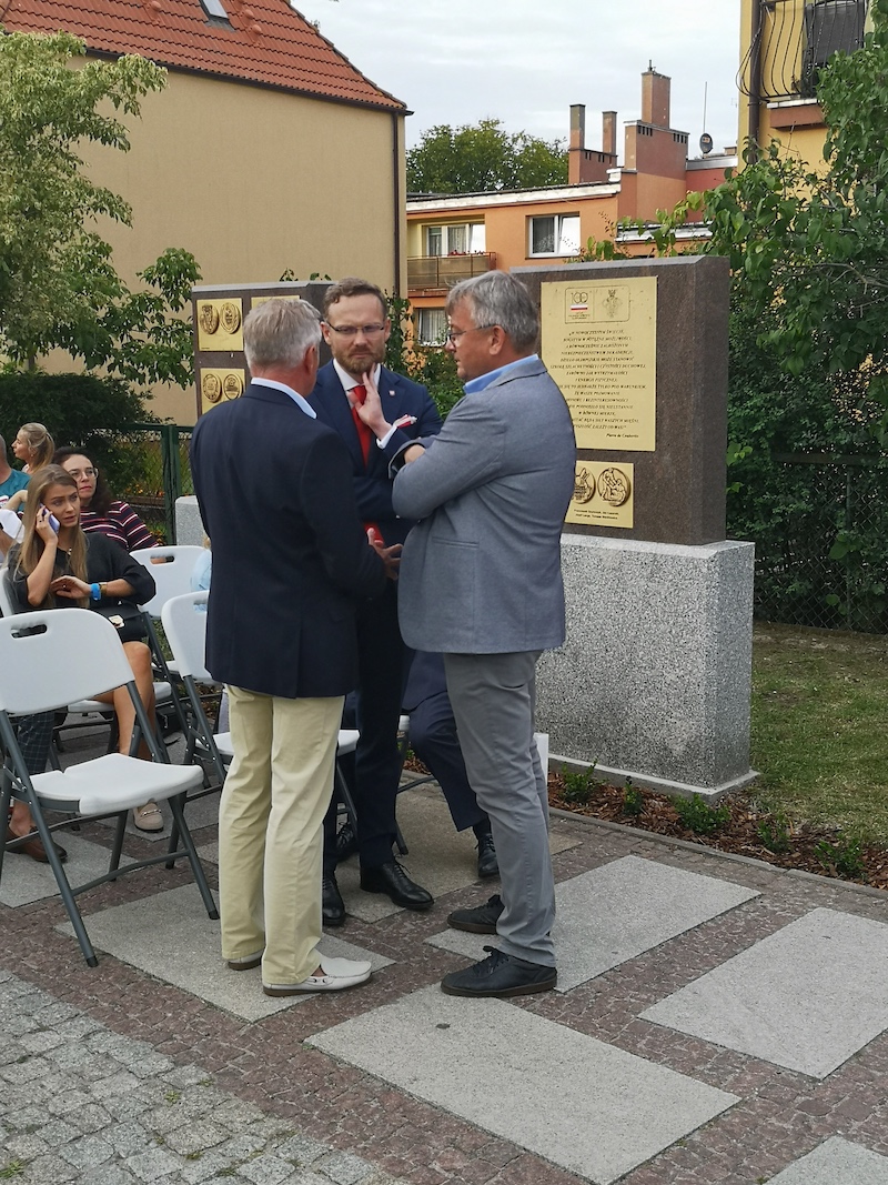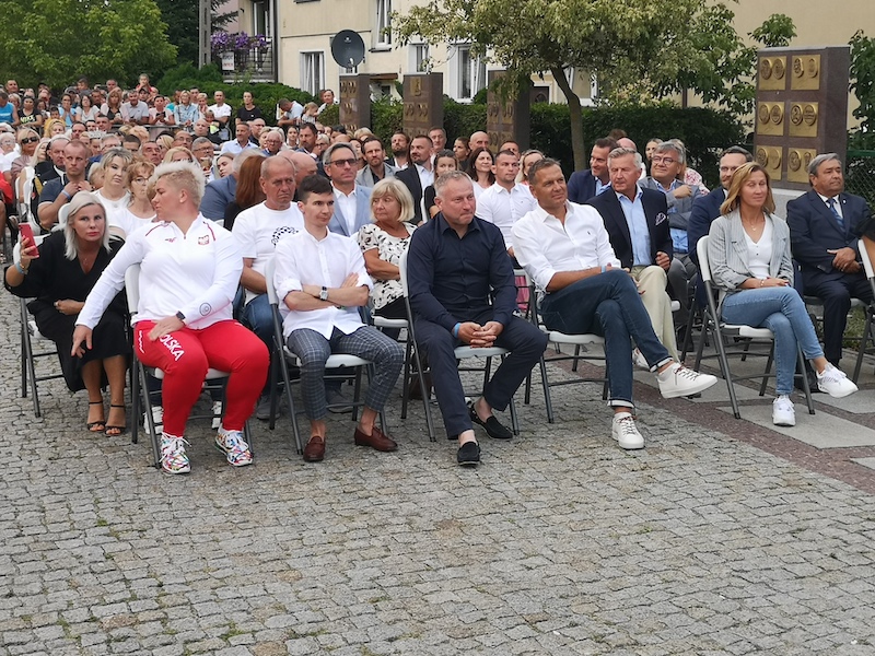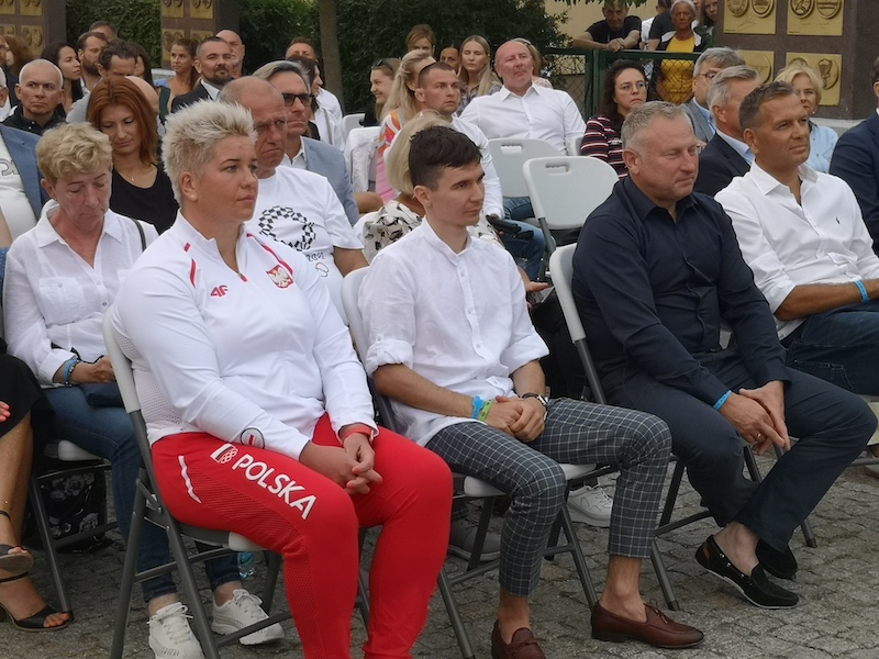 Przed ceremonią odsłonięcia replik przemawiali oficjalni gości w tym wojewoda Zbigniew Bogucki, który niczym premier (twierdził, że wykonywał każdy zawód), pochwalił się, że miał związek z każdą dyscypliną. Z rzutem młotem i Anitą Włodarczyk łączy go to, że mieszkał na granicy województwa wielkopolskiego i lubuskiego, czyli niedaleko Włodarczyk. Trenował jednak w innym klubie. Z żużlem ma taki związek, że kibicuje Unii Leszno, a nie Falubazowi Zielona Góra, w barwach którego startuje Dudek. Obecnie na miejscu wczasowicze z lubuskiego przyjęli to lekkim pomrukiem. Z biegami na 400 metrów miał związek jego ojciec, a z dziesięciobojem i Chmarą łączy go podziw dla umiejętności, jako komentatora sportowego, tego sportowca.