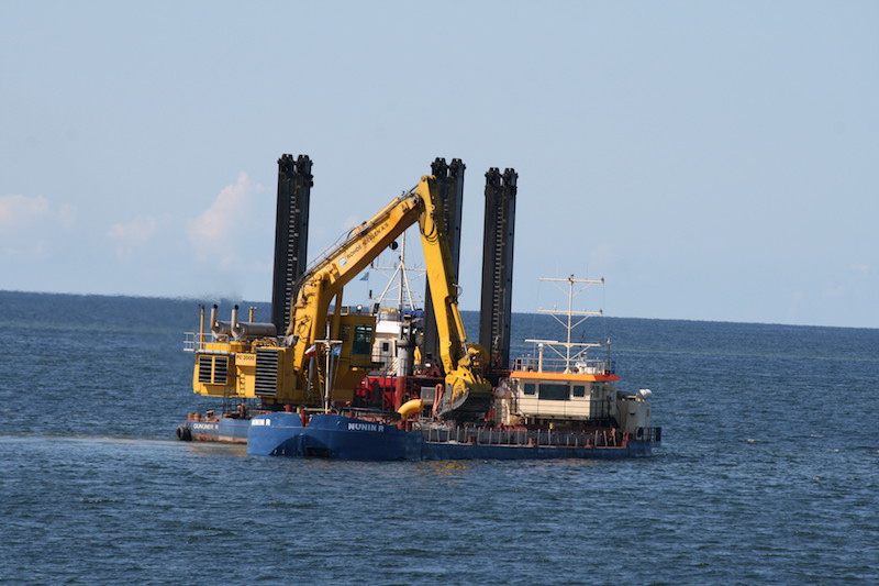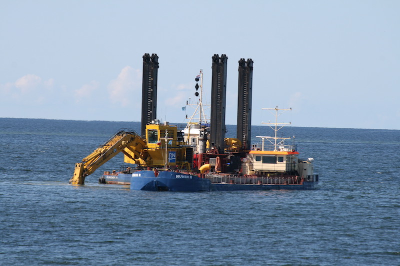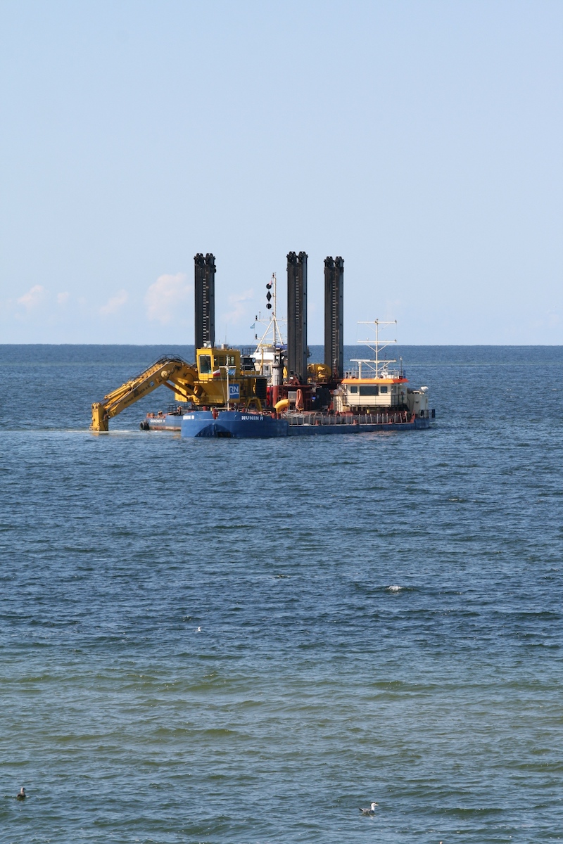 Na tunelu, a w przyszłości gazociągu, opalają się wczasowicze, którzy często nawet nie wiedzą co jest pod nimi. Na morzu trwają przygotowania do wydrążenia w dnie Bałtyku miejsca na położenie rur gazociągu. Jedna z pogłębiarek pracuje tuż przy plaży, a cztery inne w głębi morza. Ich pracę mogą obserwować plażowicze.