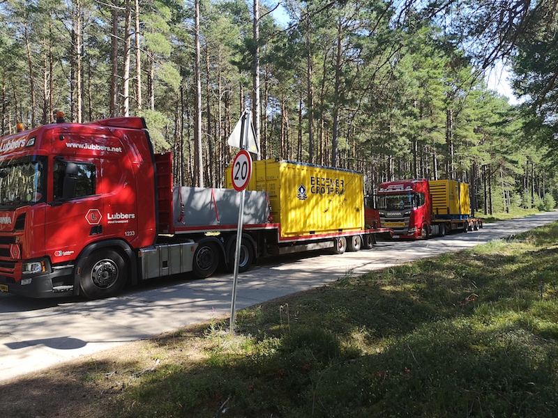 Na plac budowy w Pogorzelicy dowożone są cały czas nowe elementy wyposażenia. Tym razem, co widać na zdjęciach, był to transport specjalistycznego sprzętu dostarczony z Holandii.