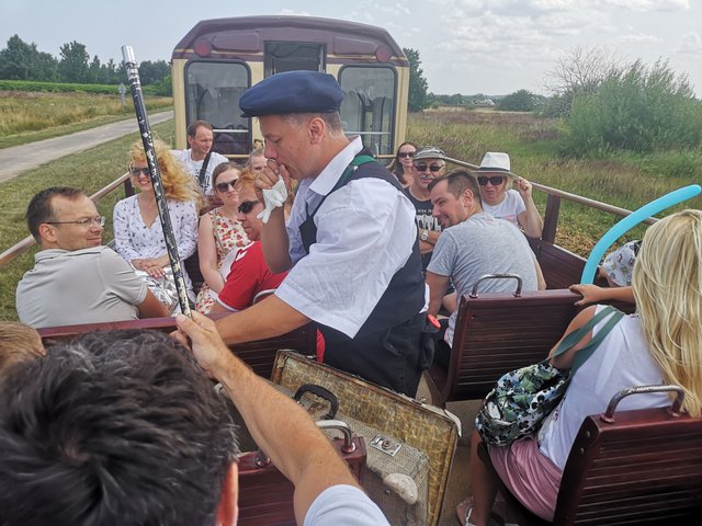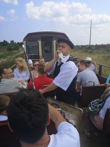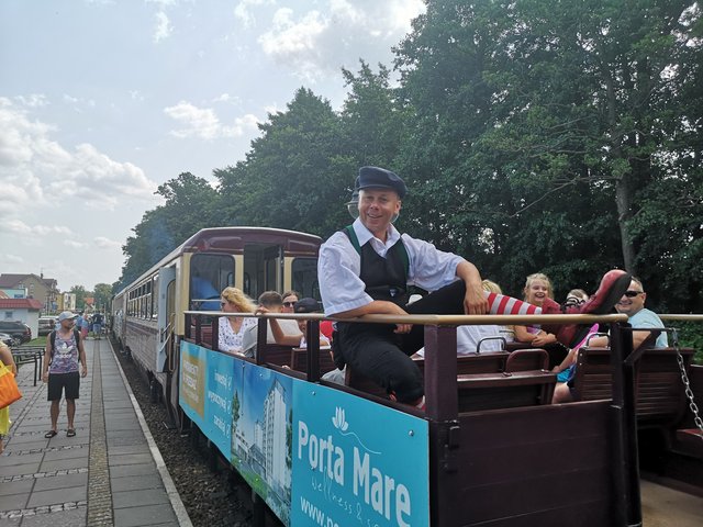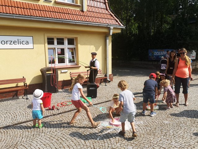 W sobotę pasażerom, który wybrali się w podróż kolejką wąskotorową kursujące na trasie Trzęsacz - Pogorzelica - Trzęsacz towarzyszył wesoły konduktor czyli Klaun Tommi. Umilał podróż, pokazywał różne sztuczki, a na stacjach dzieci mogły puszczać bańki mydlane.