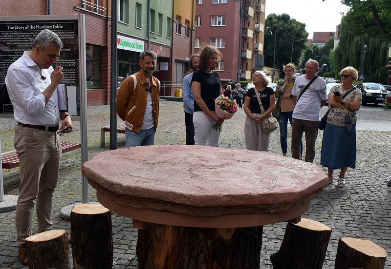 – Moja działka to mniej więcej teren dawnego pałacyku myśliwskiego, były tam też niedaleko stawy rybne, mój dom graniczy z tym miejscem – opowiada Marek Szubert, znalazca stołu. – Interesowałem się historią tego miejsca. Czytałem o najeździe Szwedów, którzy ten pałacyk spalili. W dokumentach natknąłem się na informacje o dwóch stołach, na których po polowaniu oprawiało się zwierzynę. Zacząłem drążyć temat. Pamiętałem z zapisków, że kamień był koloru czerwonego. Na tej działce wystawał kawałek czerwonego kamienia. Ktoś sobie robił na nim ognisko, bo był wypalony. Coś mnie późnym wieczorem tknęło. Złapałem za szpadel i zacząłem kopać. Gdy zadzwoniłem po godz. 23 do dyrektora muzeum i powiedziałem mu, że znalazłem ten stół, to mi nie do końca uwierzył. Następnego dnia rano przyjechał z żoną i go razem wykopaliśmy. To było to! Mam nadzieję, że uda mi się jeszcze znaleźć kamienną stopę tego stołu.