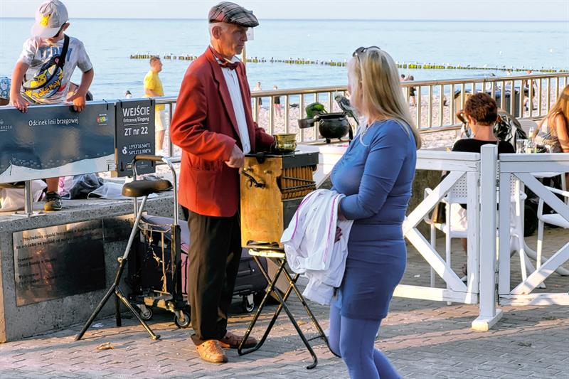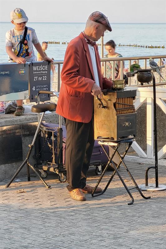 Niczym przez tunel czasu przeprowadza przechodniów w przeszłość kołobrzeski kataryniarz ze swoimi papugami. Od lat te same melodie i to samo miejsce przy latarni morskiej. I choć świat podąża coraz większym tempem, on wydobywa ze swojej katarynki stare melodie, wciąż kręcąc powolnie jej korbą. ©℗