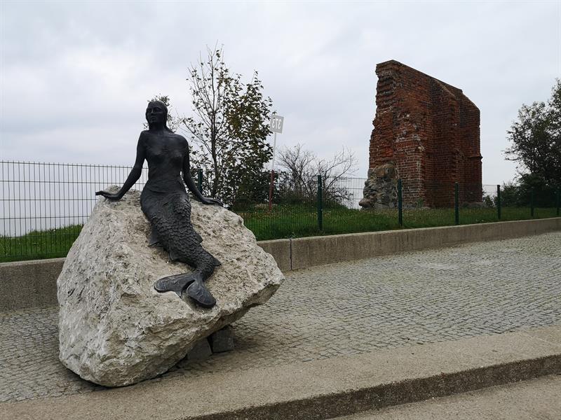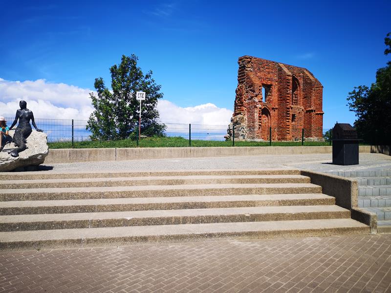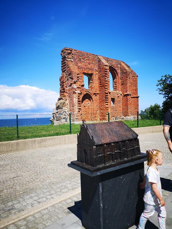 Przed ruinami zabytkowego kościółka w Trzęsaczu pojawiła się kolejna atrakcja turystyczna, jaką jest wykonana z brązu rzeźba stojącego tu w przeszłości kościółka, który zatopiło morze.