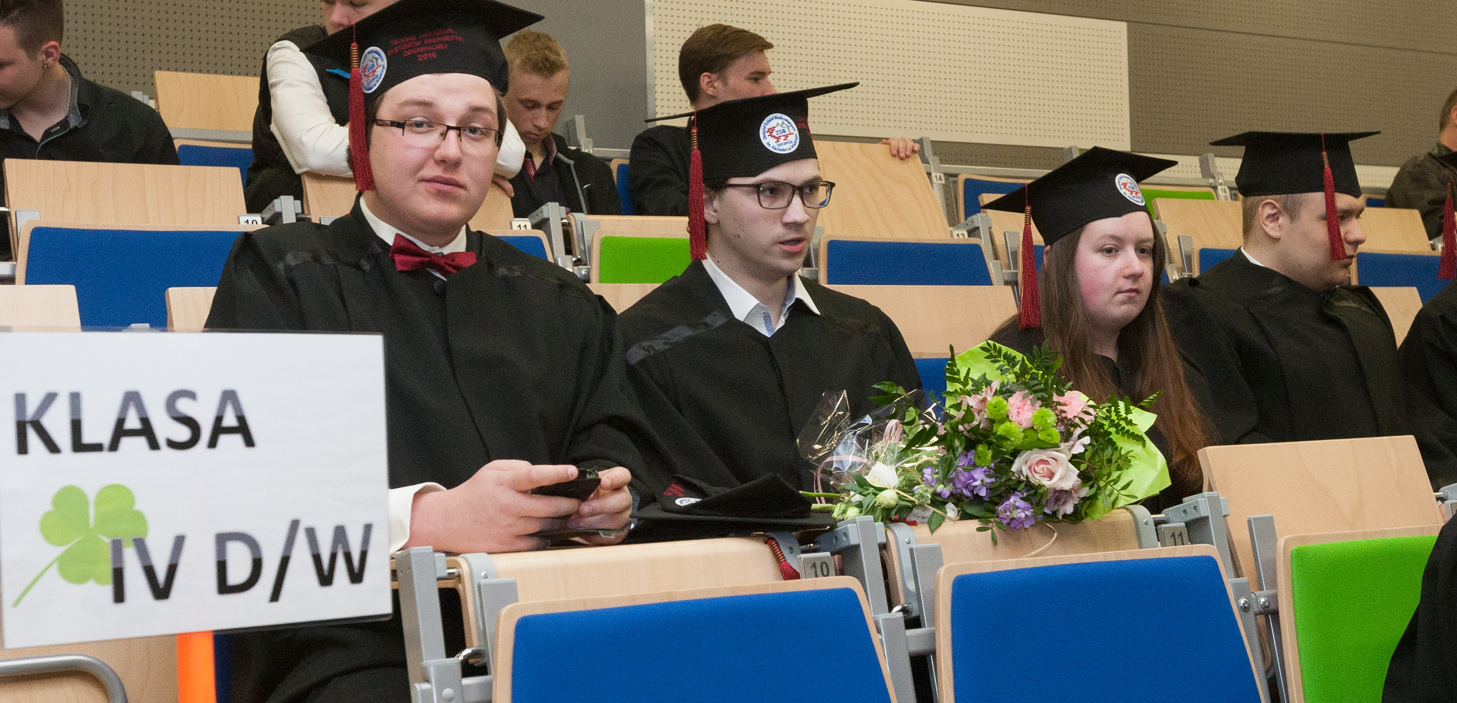Około 130 absolwentów Zespołu Szkół Budowlanych w Szczecinie świętowało swoje absolutorium. Tradycyjnie już abiturienci "budowlanki" otrzymanie świadectwa ukończenia szkoły, zaakcentowali radosnym wyrzuceniem biretów w górę. Były kwiaty, podziękowania nauczycielom i rodzicom