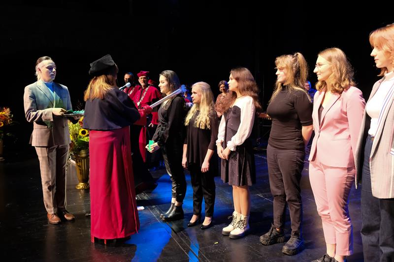 - Mamy 830 studentów, z czego prawie połowa to osoby spoza województwa zachodniopomorskiego, co wskazuje na dobrą promocję Akademii Sztuki - stwierdziła rektor AS. - Studenci przyjeżdżają do nas z bardzo różnych miejsc, nawet z Zakopanego. To, co wyróżnia naszą uczelnię, to bardzo dynamiczny rozwój i świetna infrastruktura. W Centrum Przemysłów Kreatywnych prowadzimy warsztaty unikatowe w skali Polski. Jesteśmy jedyną uczelnią w kraju łączącą dyscyplinę sztuk muzycznych i sztuk plastycznych. Nastawiamy się na unikatowe kierunki, które liczą po 12 osób w grupie. Nasi studenci znajdują pracę.