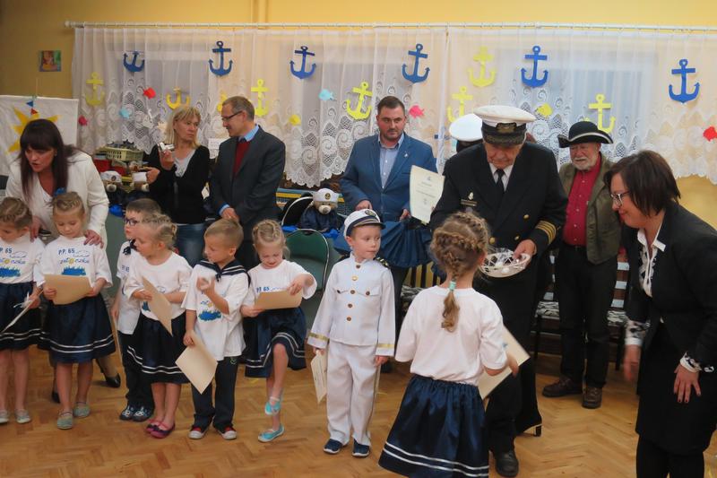 Brawurowe tańce, deklamacje i piosenki morskie podziwiali, filmowali i oklaskiwali w czwartkowe popołudnie (9 listopada) wzruszeni rodzice, dziadkowie i goście. Tak solidnie i pomysłowo przygotowały do ceremoniału „Pasowania na żeglarzy” swoich podopiecznych – starszaków z Przedszkola Publicznego 65 „Zatoczka” – ich wychowawczynie w ramach Szczecińskiego Programu Edukacji Wodnej i Żeglarskiej. Po występach przyszedł czas na ślubowanie i pasowanie, a potem dyplomy, upominki, zdjęcia i na koniec okazjonalny tort
