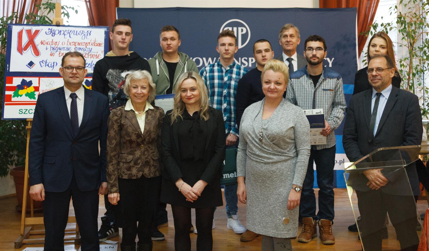 Na zdjęciu: finaliści, opiekunowie i organizatorzy IX Konkursu "Wiedzy o bezpieczeństwie i higienie pracy".