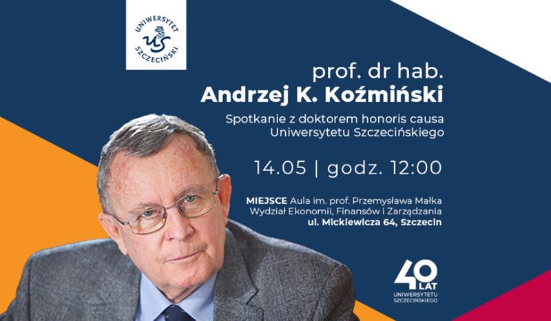 Uniwersytet Szczeciński zaprasza do udziału w spotkaniu z prof. Andrzejem K. Koźmińskim, doktorem honoris causa Uniwersytetu Szczecińskiego. Temat wystąpienia to „Rewolucja zwinnych w szkolnictwie wyższym”, który nawiązuje do najnowszej książki uczonego. Start: 14 maja, g. 12, Wydział Ekonomii, Finansów i Zarządzania przy ul. Mickiewicza 64.