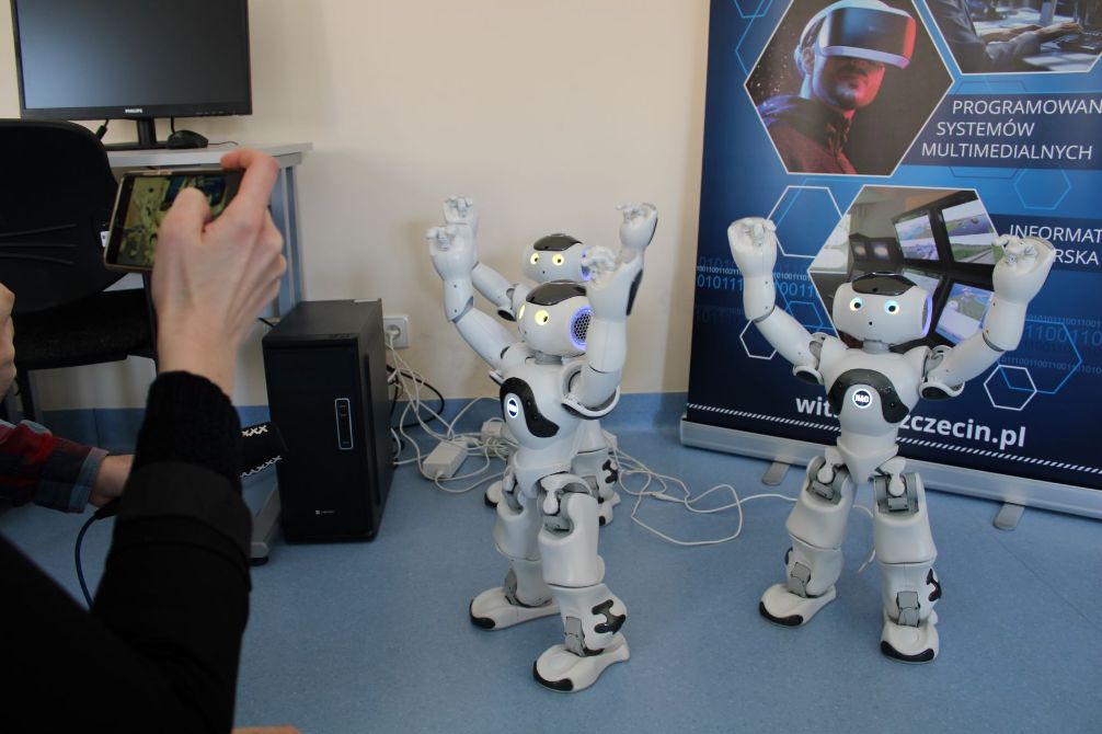 Obecnie, w zależności od tego, jak zostaną zaprogramowane – roboty prowadzą rozmowy, odpowiadają na pytania. Póki co, od początku roku, pracownicy WIiT zgłębiają ich zastosowania, uczą się je programować i poznają świat robotów. Czy boją się, że roboty przejmą kontrolę nad Akademią, a potem nad światem?