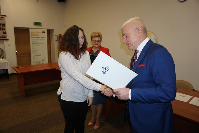 Ciepłe słowa padły także z ust Aleksandry Cząstki, jednej z nagrodzonych uczennic: - W państwa firmie mieliśmy okazję zgłębiać tajniki przemysłu chemicznego, korzystać ze sprzętu, z laboratoriów, za co bardzo dziękujemy. Mam nadzieję, że nasza współpraca będzie obustronna. Dlatego prosimy o jeszcze jedno, o ciepłe przyjęcie nas jako przyszłych pracowników państwa spółki oraz o trzymanie za nas kciuków na przyszłych egzaminach.