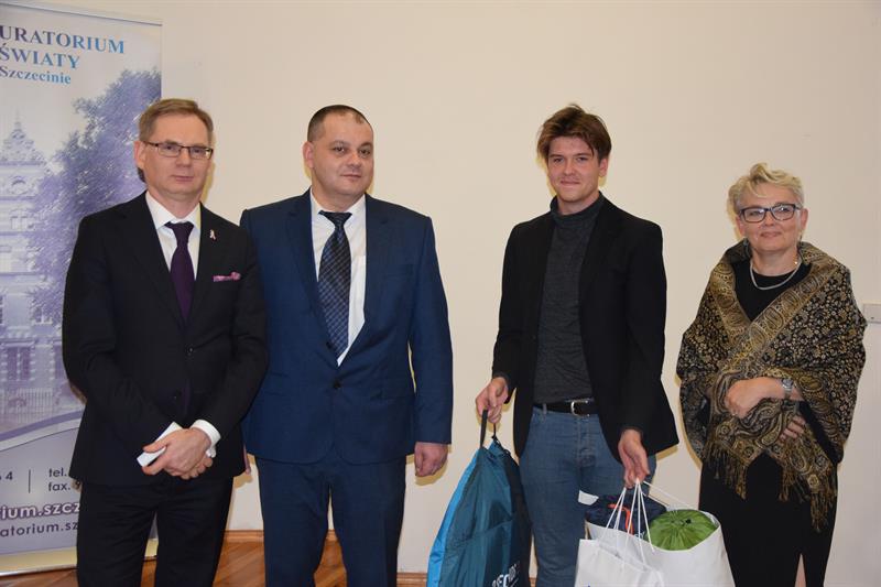 Pierwsze miejsce zajął Gabriel Ogorzałek z 1 LO w Stargardzie (na zdjęciu z nagrodami), drugie - Michał Szymański z LO z Oddz. Integracyjnymi w Świnoujściu, trzecie - Sebastian Piasecki z 1 LO w Szczecinie, czwarte - Wojciech Szulkowski z 1 LO w Stargardzie, piąte - Michał Lasota z ZS Technicznych w Szczecinku oraz Amelia Macewicz z ZSO nr 4 z Oddz. Dwujęzycznymi w Szczecinie.