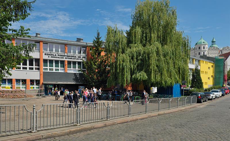 SP 63 z OI to kameralna, położona w centrum Szczecina w pobliżu Zamku Książąt Pomorskich, placówka. Posiada ona nowy plac zabaw i boiska szkolne oraz klasy wyposażone w nowoczesne tablice interaktywne, a pracownie biologiczno-chemiczne w najnowsze pomoce laboratoryjne i dydaktyczne. Placówka kształci dzieci zdrowe oraz te o specjalnych potrzebach edukacyjnych, ma więc nieliczne klasy, w których lekcje prowadzi dwoje nauczycieli. W SP 63 z OI dzieci otrzymują również stalą pomoc pedagogiczno-psychologiczną, placówka ma psychologa, pedagoga i logopedę oraz prowadzi specjalne zajęcia i terapie.
