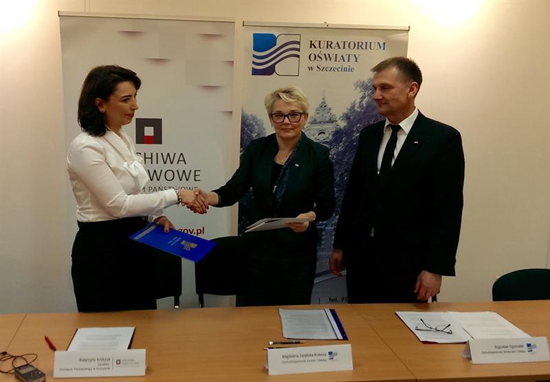Archiwum Państwowe w Koszalinie i Zachodniopomorskie Kuratorium Oświaty w Szczecinie zawarły porozumienie na rzecz wspólnych działań w ramach edukacji historycznej, archiwalnej i regionalnej. Taka umowa od dwóch lat lat funkcjonuje już w stolicy województwa. Inicjatywa, która będzie kultywować dziedzictwo kulturowe Zachodniopomorskiego, adresowana jest do uczniów.