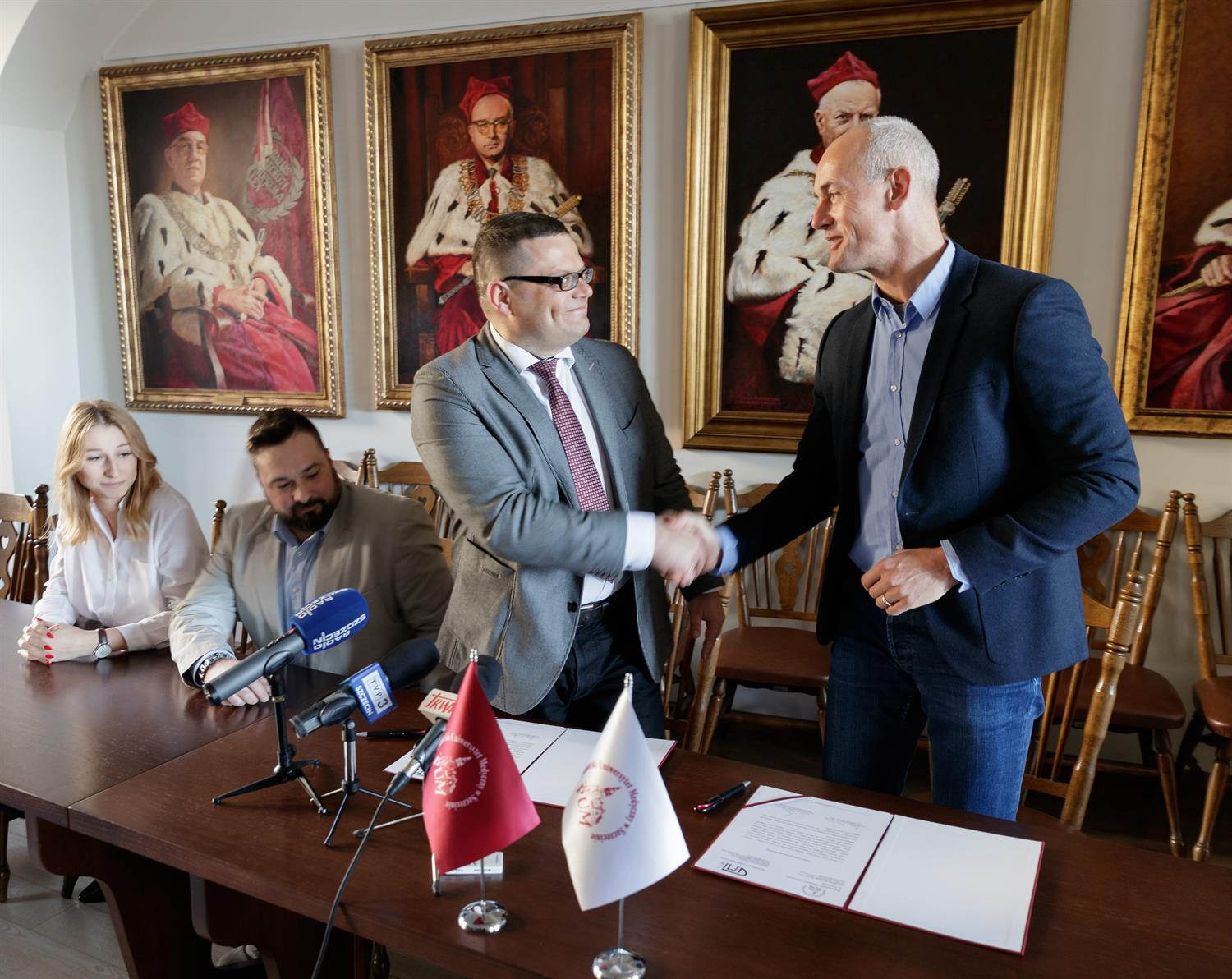 Na zdjęciu: Prof. Jerzy Samochowiec oraz prof. Walter Parsons podpisali list intencyjny o współpracy.