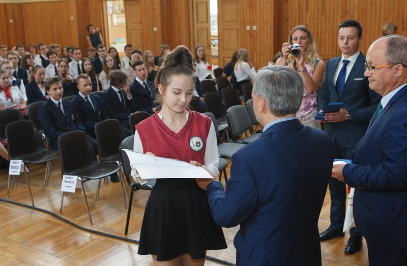 Szczecińscy laureaci konkursów przedmiotowych Zachodniopomorskiego Kuratora Oświaty oraz konkursu „Losy żołnierza i dzieje oręża polskiego” odebrali w poniedziałek dyplomy i nagrody. Gimnazjalistom wręczyli je podsekretarz stanu w Ministerstwie Edukacji Narodowej Maciej Kopeć oraz wicekurator oświaty Jerzy Sołtysiak.