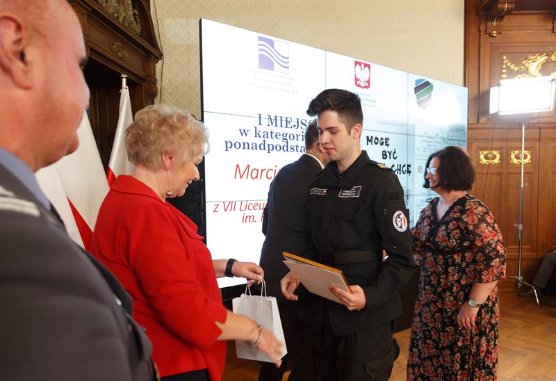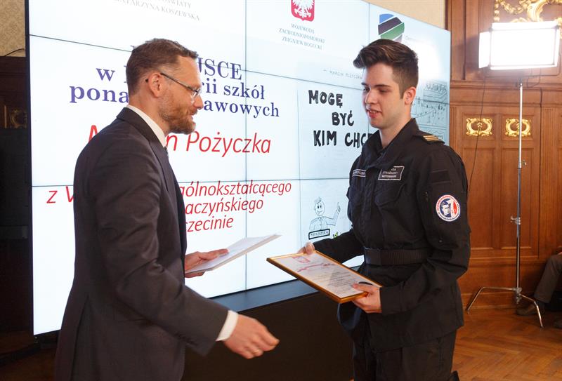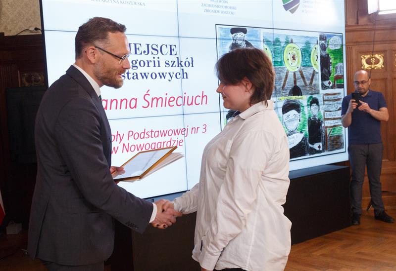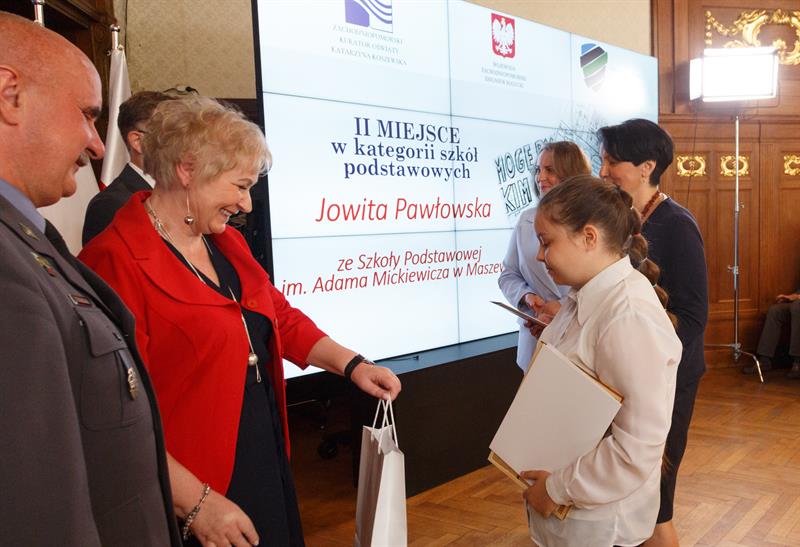 Za konkurs na komiks „Mogę być kim chcę…” zorganizowany przez wojewodę, kurator oświaty oraz Szefa Ośrodka Zamiejscowego w Szczecinie Centralnego Wojskowego Centrum Rekrutacji płk Zbigniewa Adamczyka wyróżniono dziewięciu laureatów. Czterech uczniów otrzymało dyplomy za zwycięstwo w II edycji konkursu genealogicznego „Bez korzeni nie zakwitniesz. Moja Wielka i Mała Ojczyzna”. Podsumowano również IV edycję konkursu na pracę historyczno-literacką pt. „Znajdź swoją pamiątkę rodzinną i opisz jej historię” organizowanego przez Zachodniopomorskiego Kuratora Oświaty Katarzynę Koszewską oraz Dyrektora Archiwum Państwowego w Szczecinie Krzysztofa Kowalczyka - laureatami zostało dziewięciu uczniów.