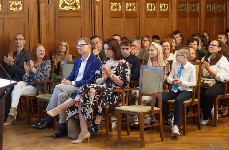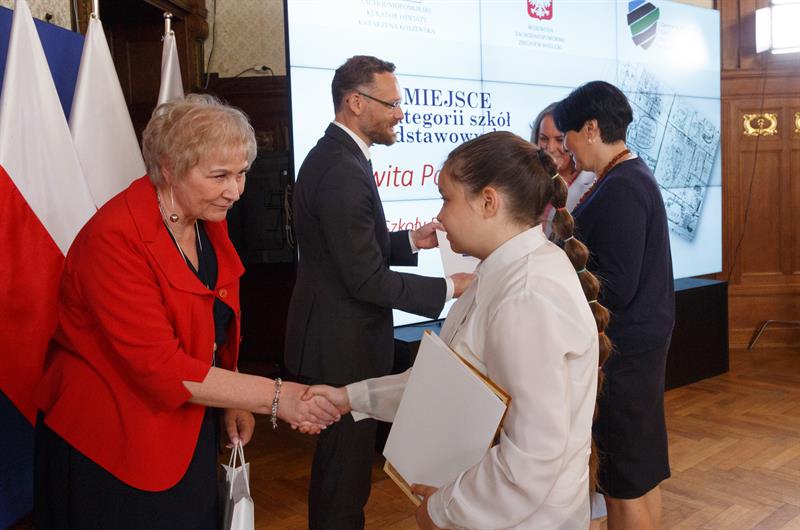 W poniedziałkowe przedpołudnie Sala Rycerska Zachodniopomorskiego Urzędu Wojewódzkiego w Szczecinie zapełniła się młodzieżą - laureatami konkursów Ministerstwa Edukacji i Nauki, Zachodniopomorskiego Kuratora Oświaty, Archiwum Państwowego w Szczecinie. Ponad trzydziestu uczniów ze szkół ze Szczecina i regionu otrzymało dyplomy i nagrody z rąk Zbigniewa Boguckiego, Wojewody Zachodniopomorskiego, Katarzyny Koszewskiej, kuratora oświaty i Krzysztofa Kowalczyka, dyrektora Archiwum Państwowego w Szczecinie.